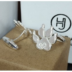 Gemelos Huella de perro plata de ley