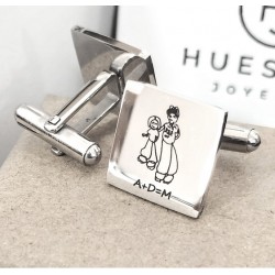 Gemelos personalizados con silueta tallada en plata...